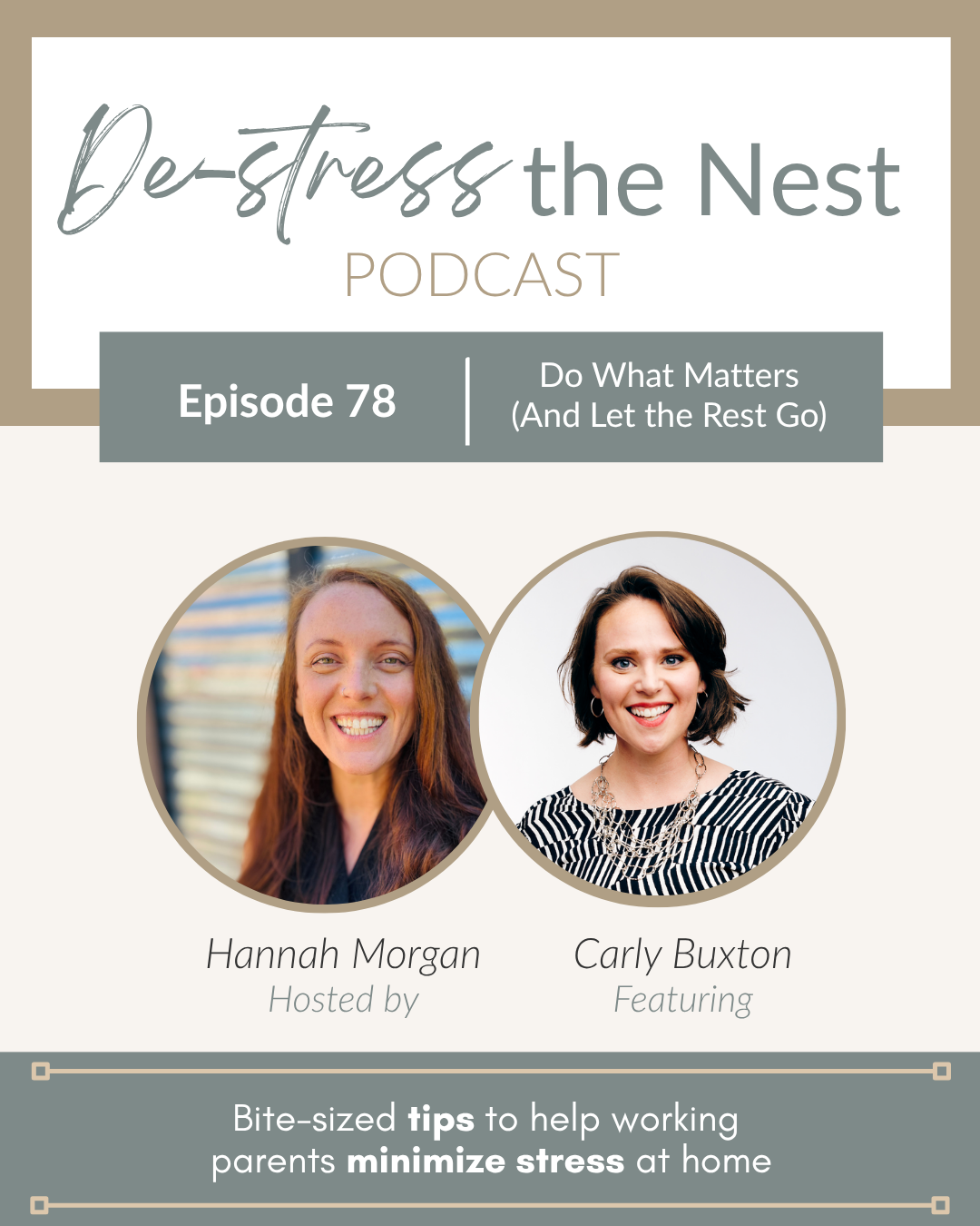In this episode of De-Stress the Nest, Hannah Morgan sits down with returning guest Carly Buxton, founder of Parent Swarm, to talk about how one simple phrase — “do what matters” — can completely shift the way you make decisions as a parent.