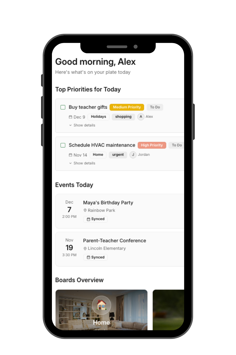 The first-ever AI-powered app designed to help busy parents balance and manage their mental load at home.